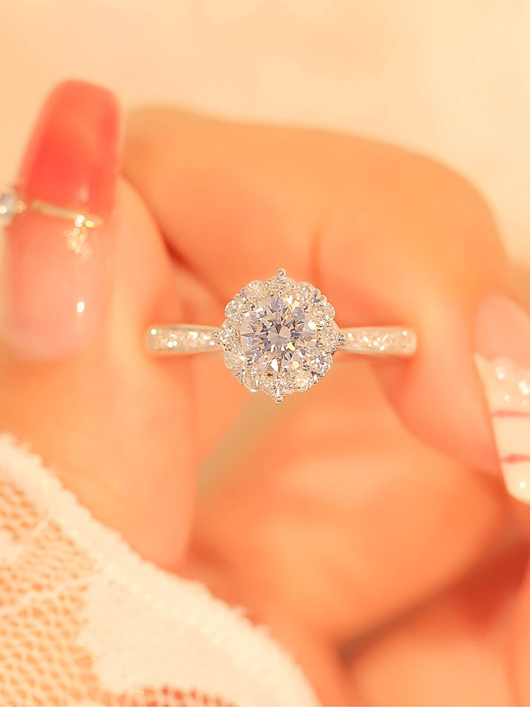 • 新品周家爱灿若星辰K金经典时尚镶嵌钻石戒指求婚订婚女生日礼物