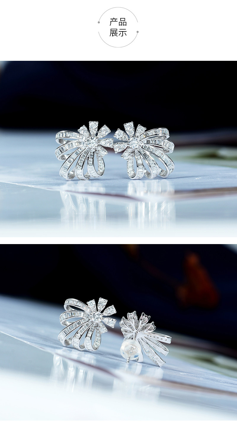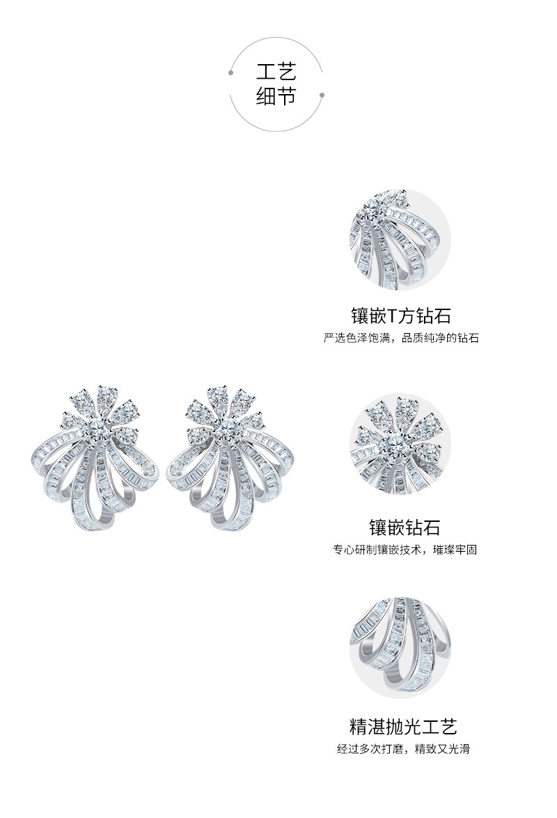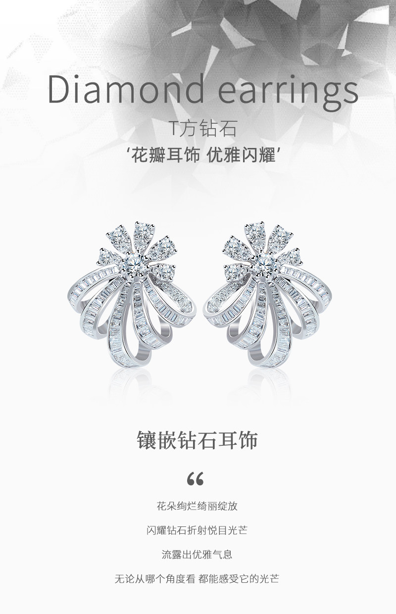 俊皇珠宝 纯18K金T方豪华镶嵌钻石耳饰 花瓣线条造型耳饰A