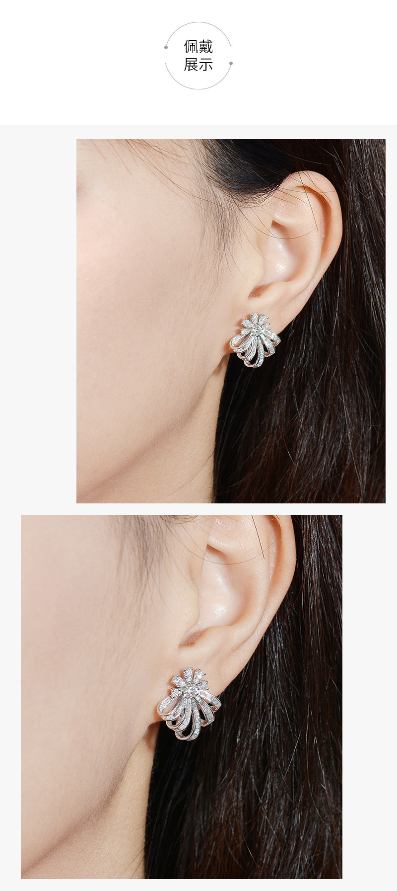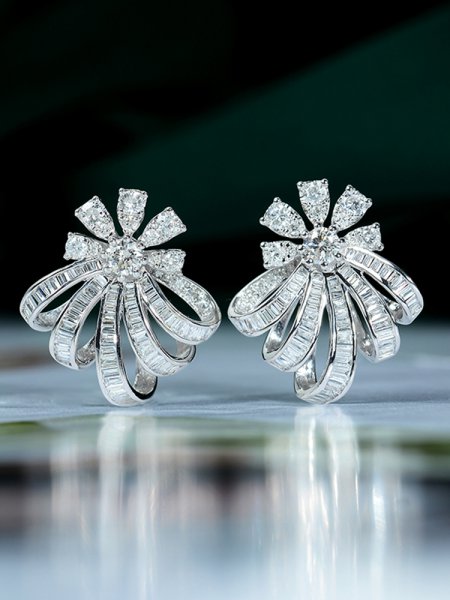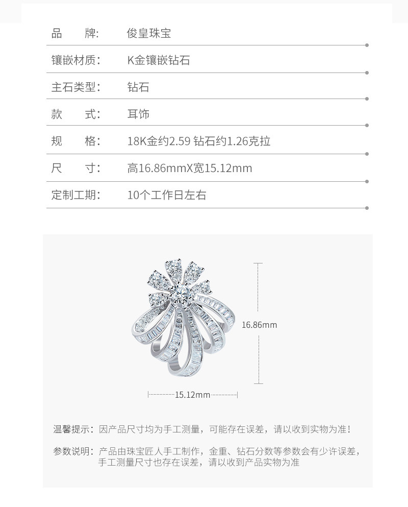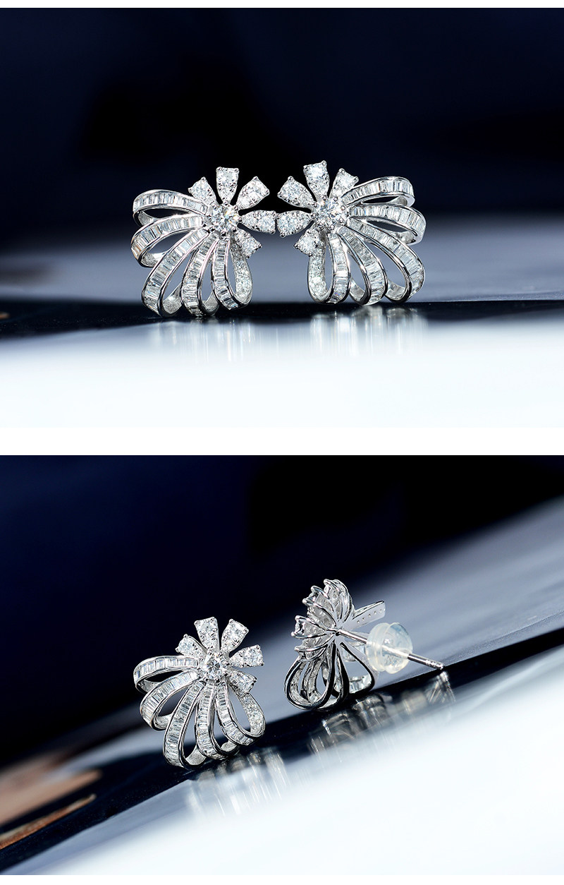 俊皇珠宝 纯18K金T方豪华镶嵌钻石耳饰 花瓣线条造型耳饰A