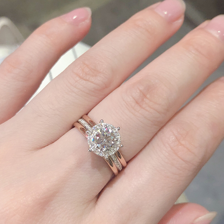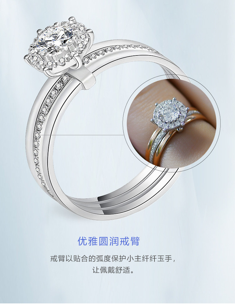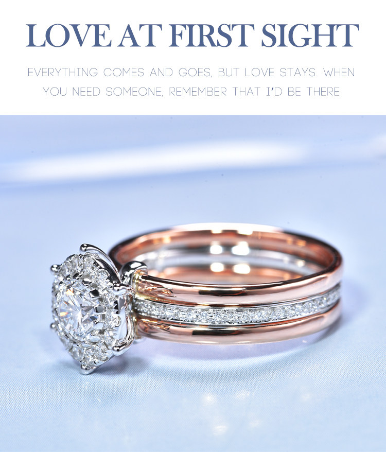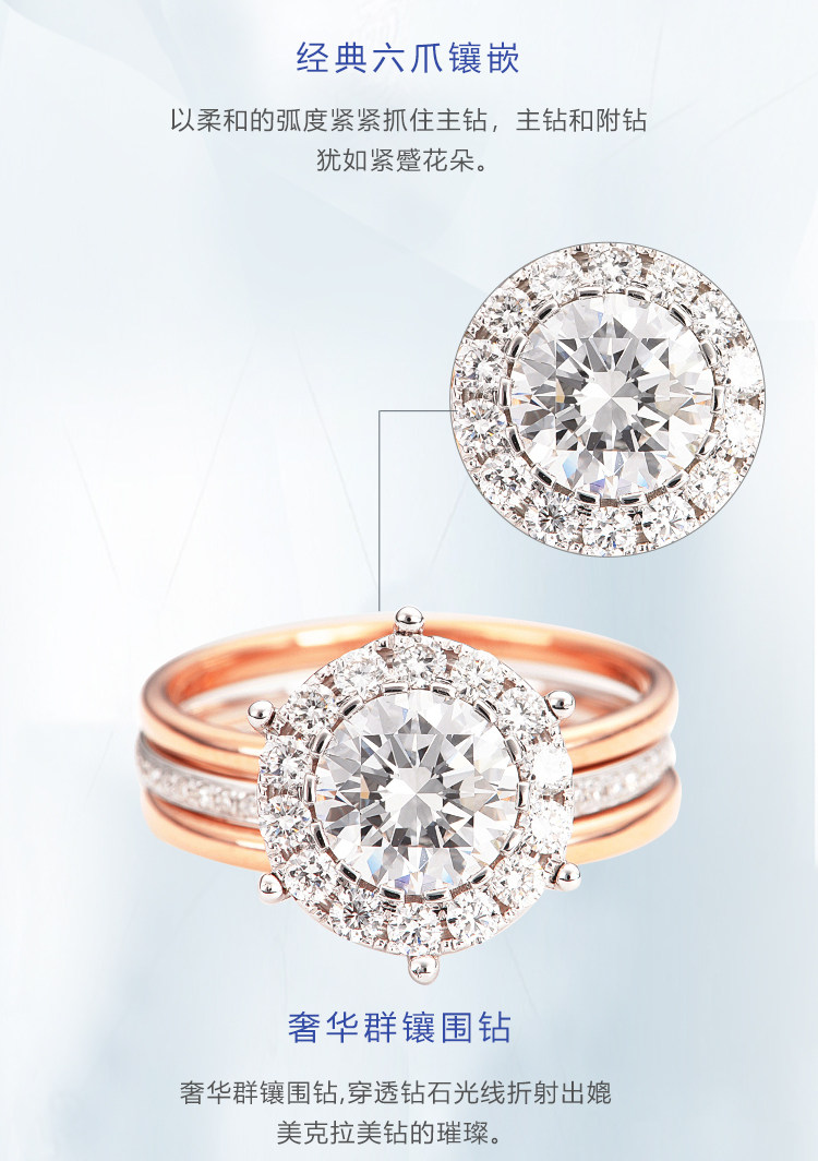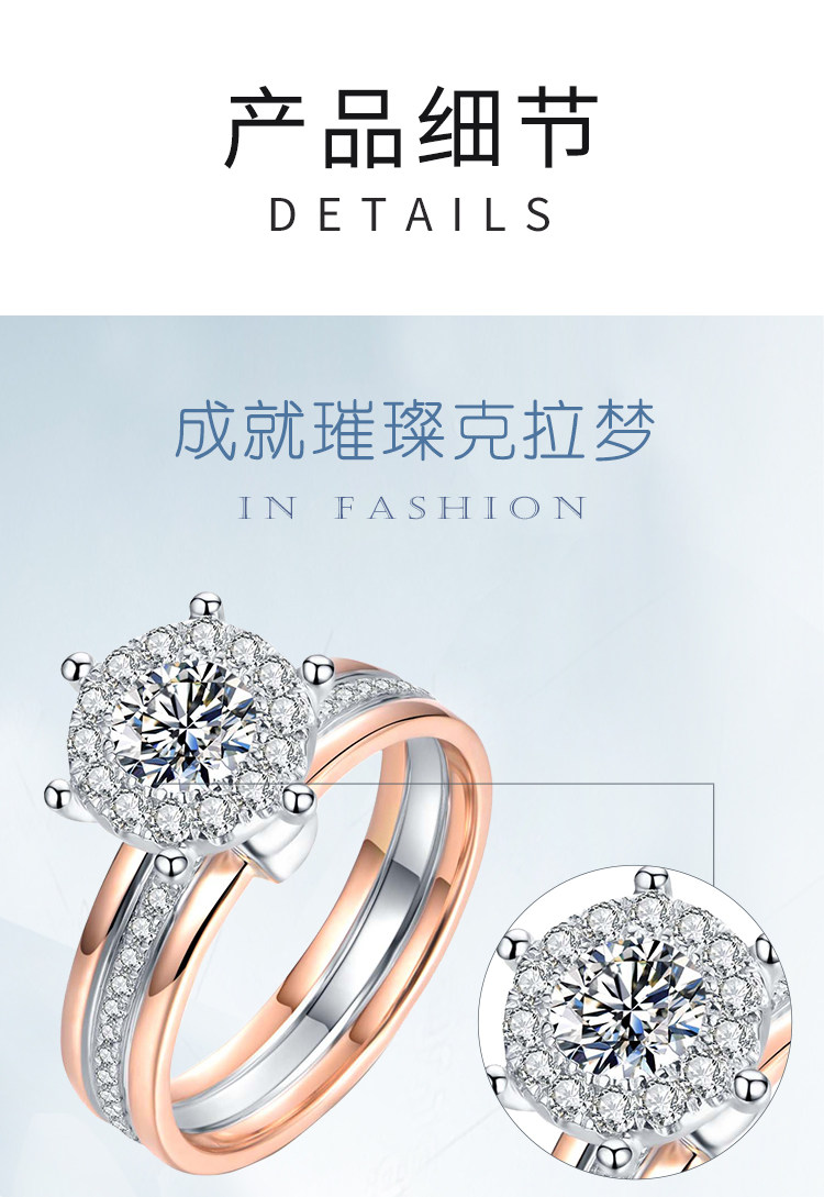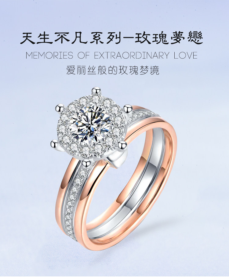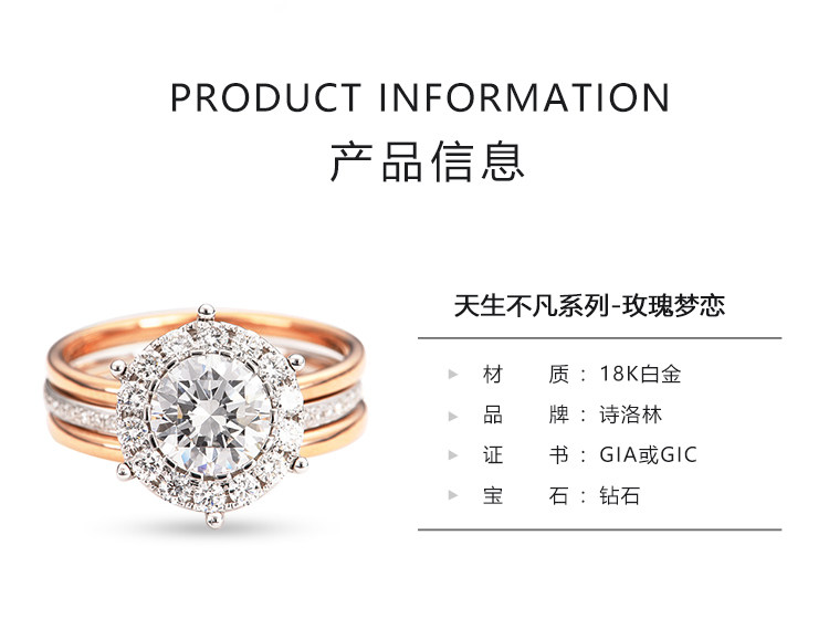 • 洛林 玫瑰金钻戒圆形女钻石戒指双色金戒指30分裸钻正品定制