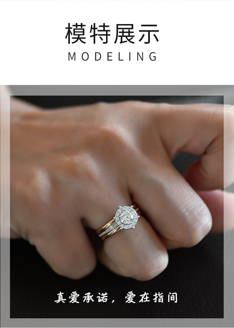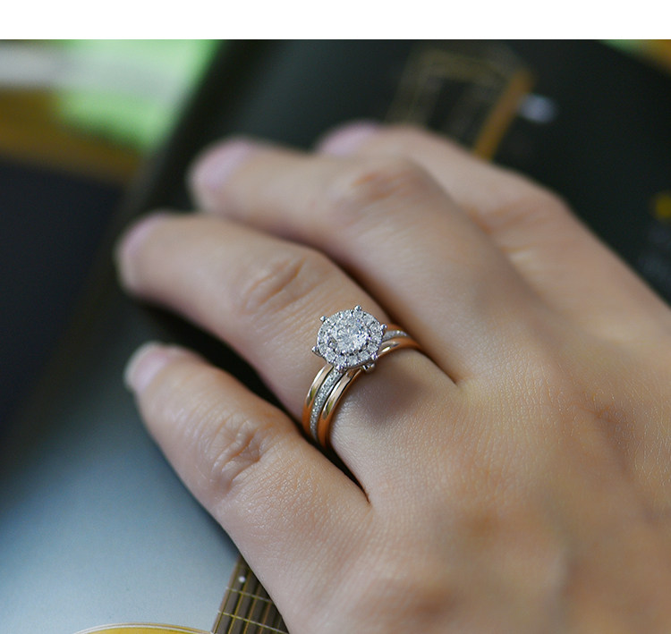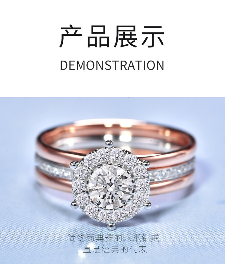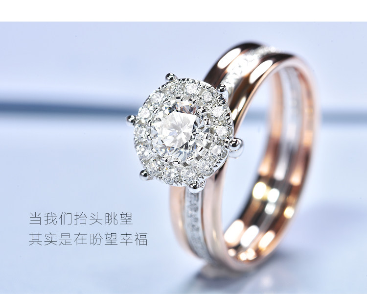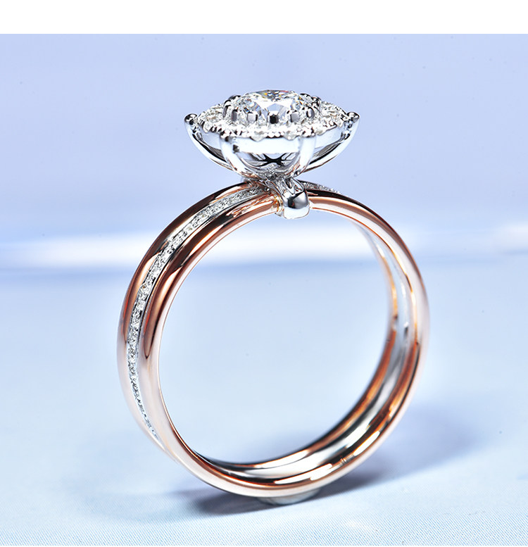 洛林 玫瑰金钻戒圆形女钻石戒指双色金戒指30分裸钻正品定制
