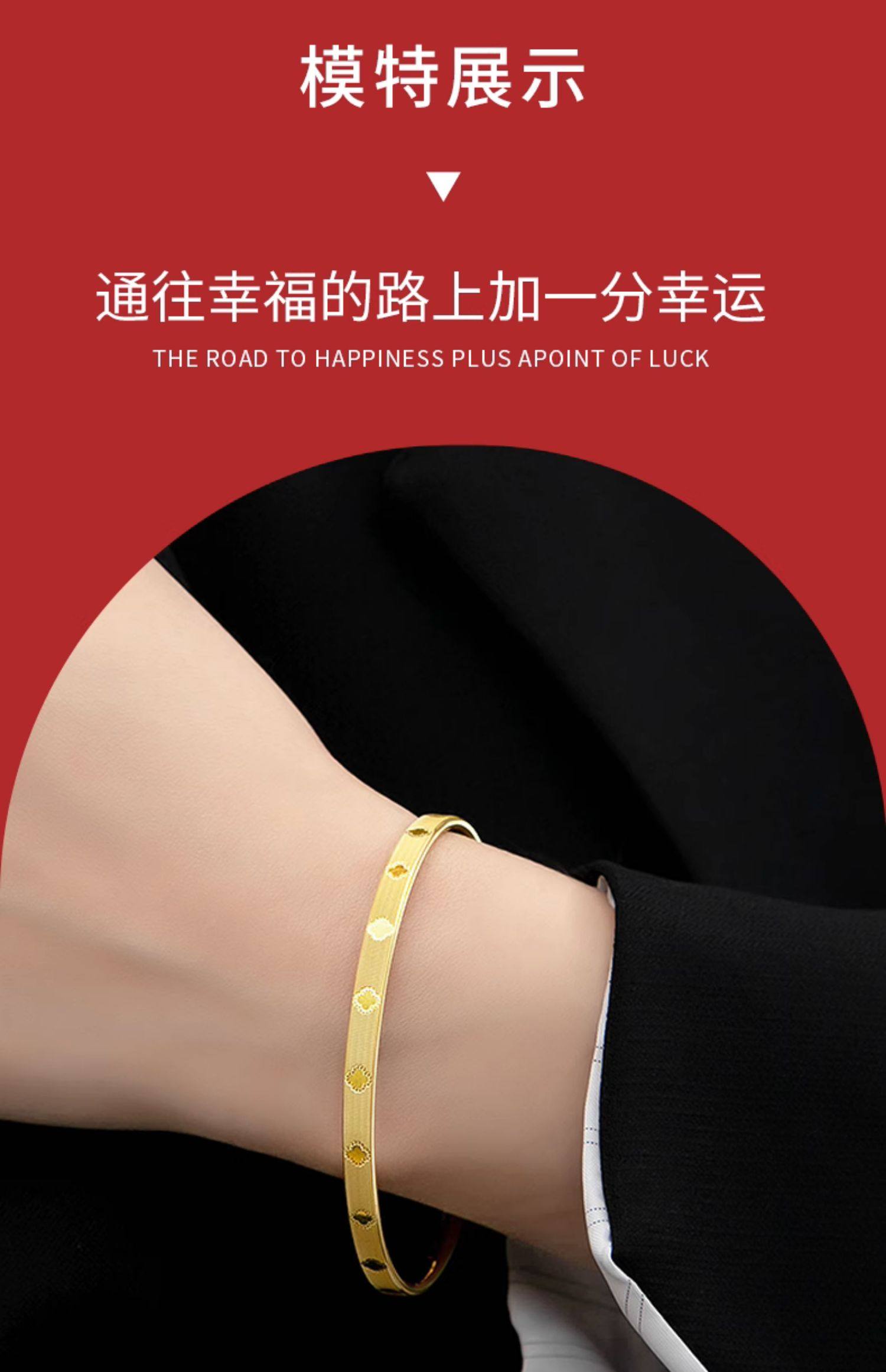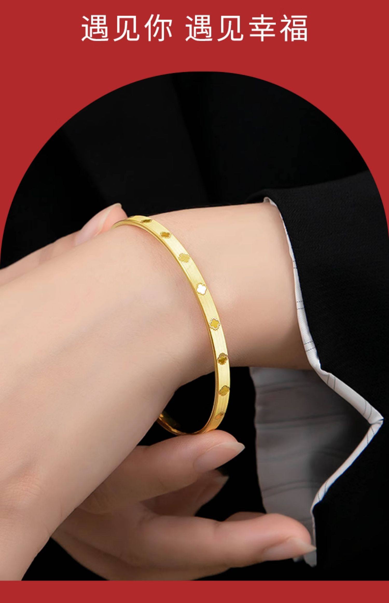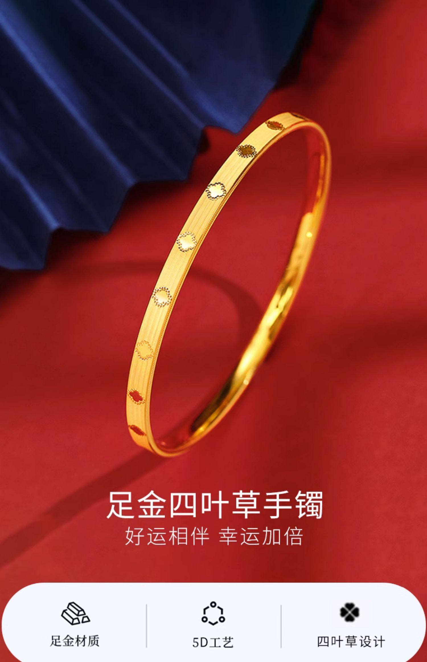 • 黄金四叶草手镯女新款999足金手饰纯金镯子正品素圈手链生日礼
