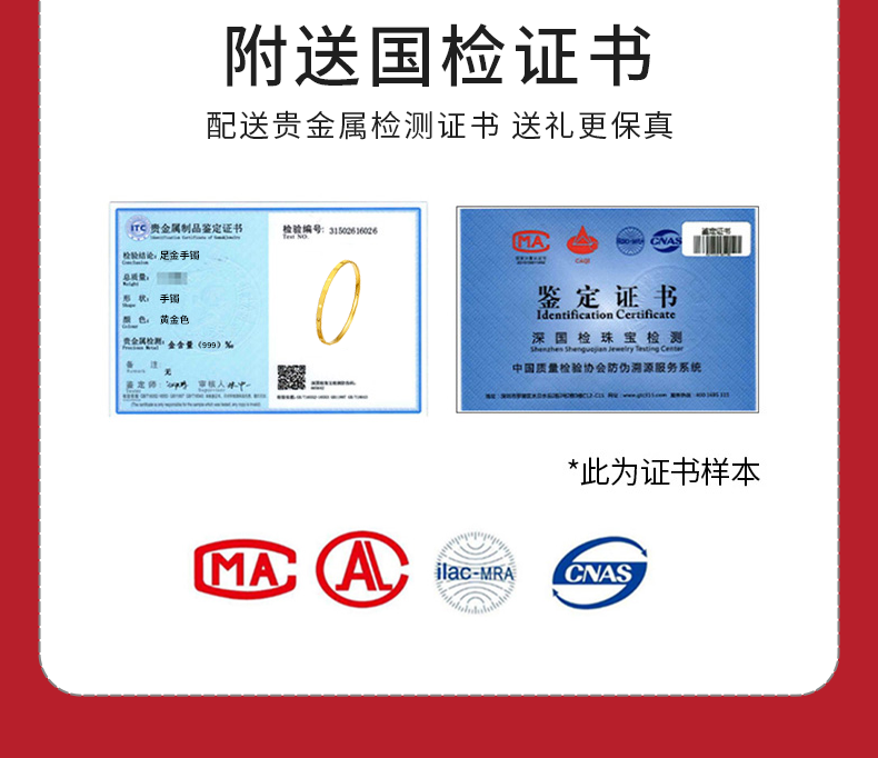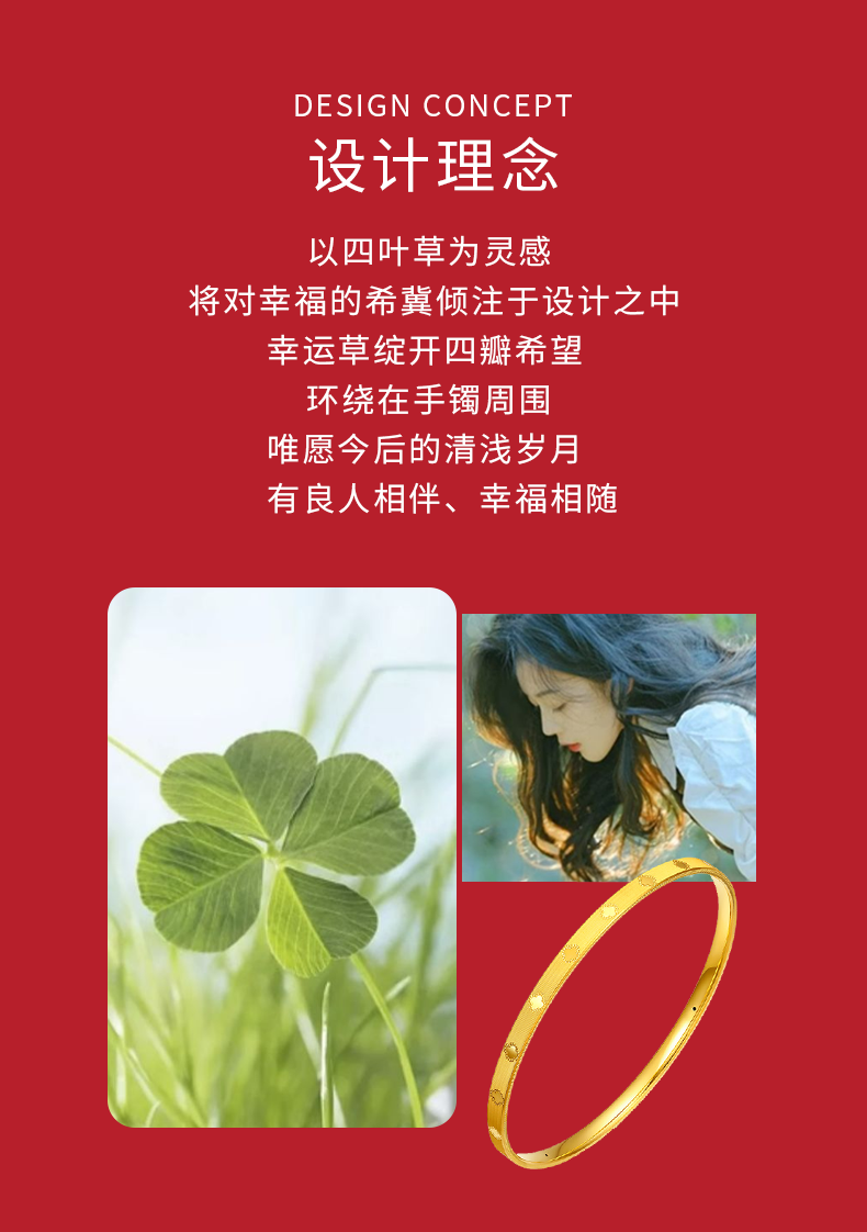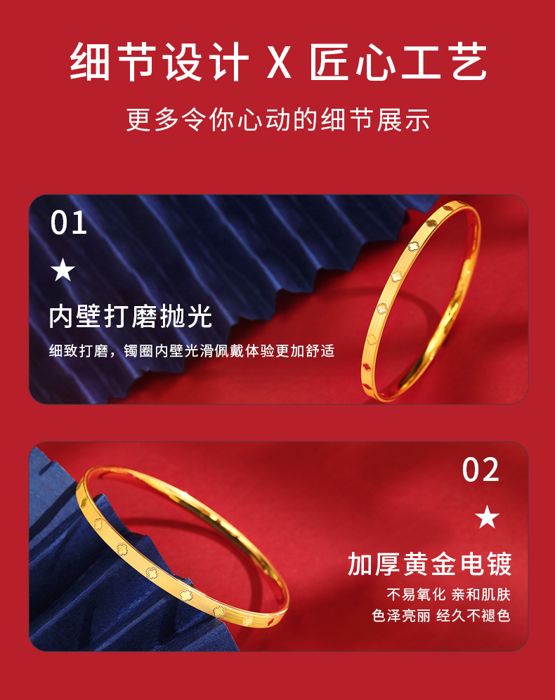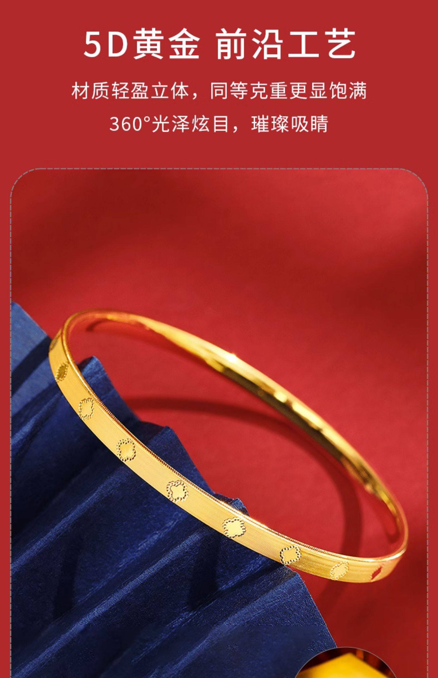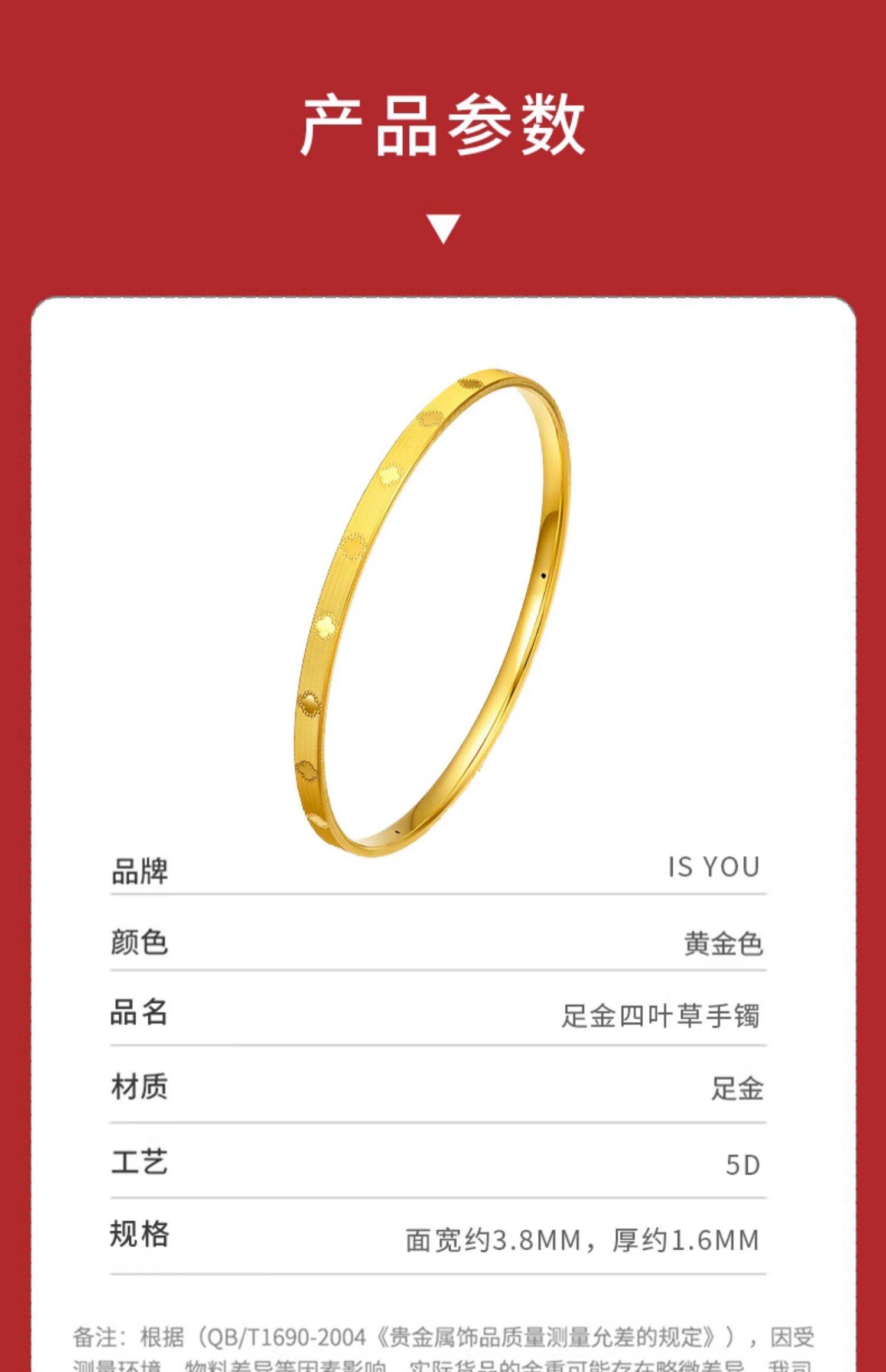 • 黄金四叶草手镯女新款999足金手饰纯金镯子正品素圈手链生日礼