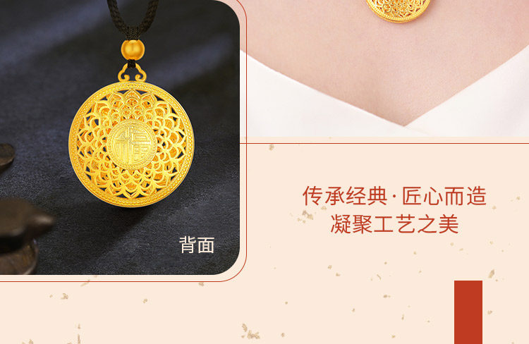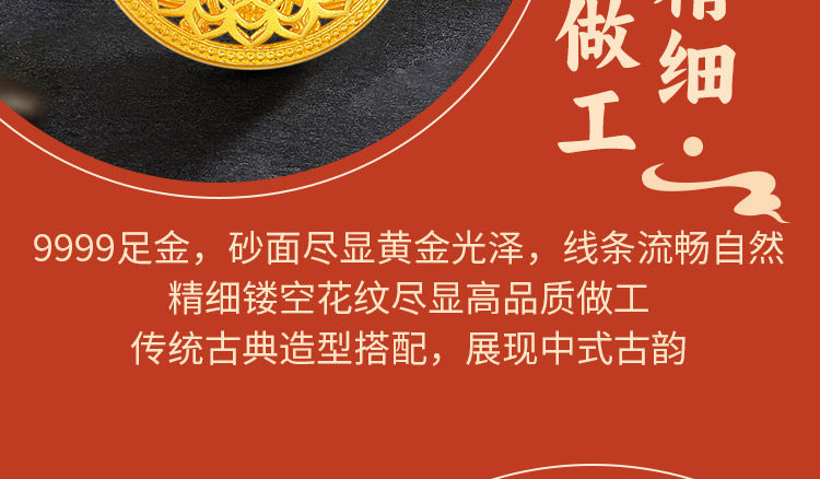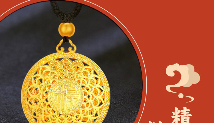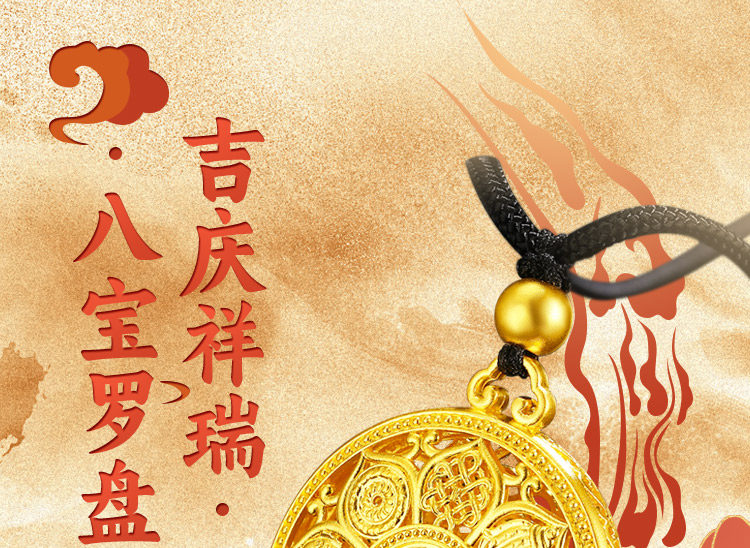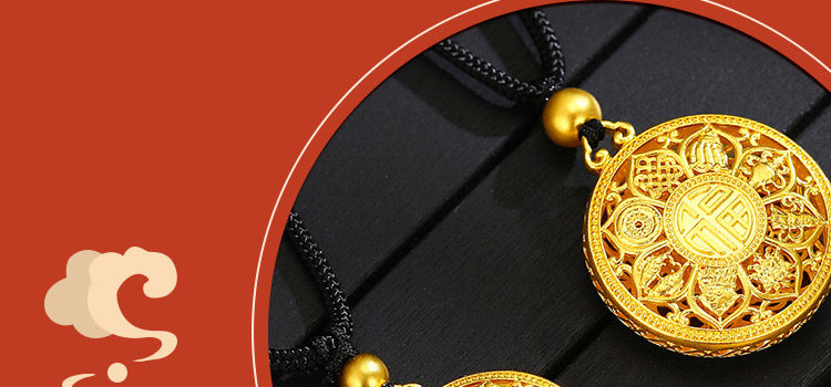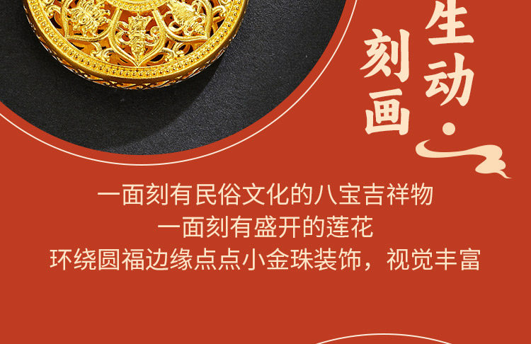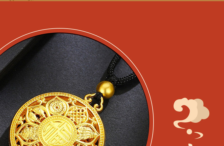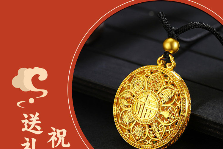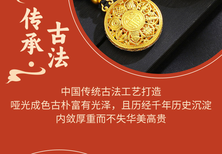 • 古法黄金八宝罗盘吊坠足金9999传承精工实心吉祥福牌吊坠男女