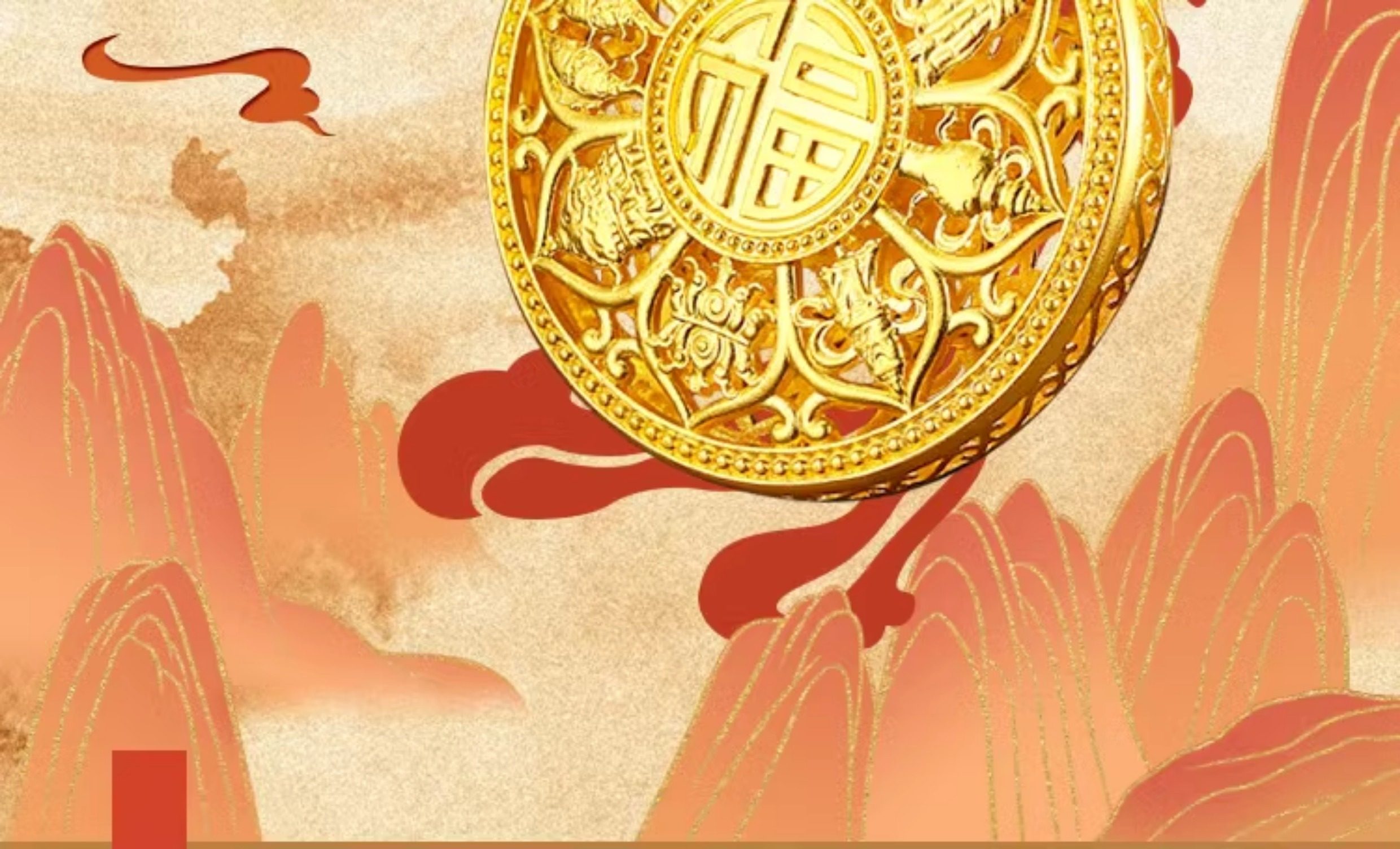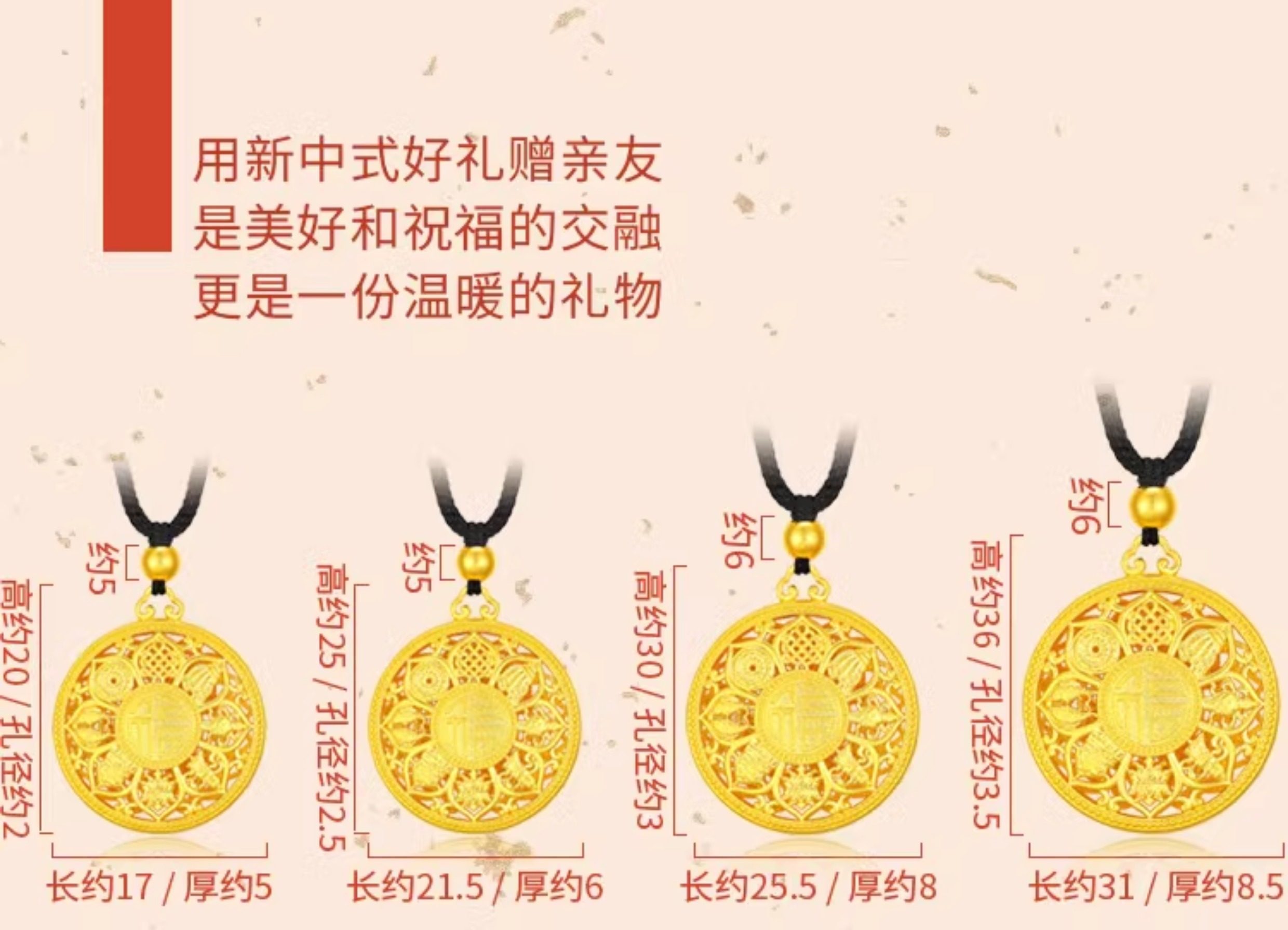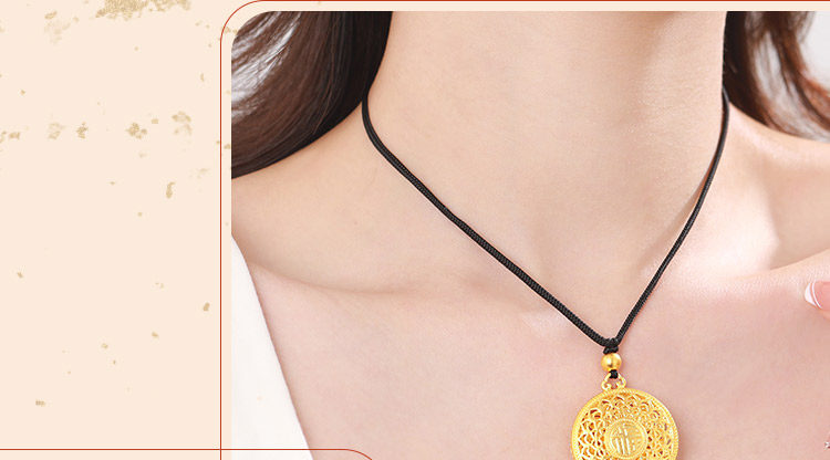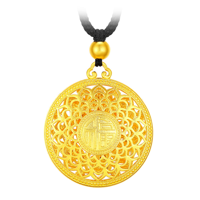 • 古法黄金八宝罗盘吊坠足金9999传承精工实心吉祥福牌吊坠男女