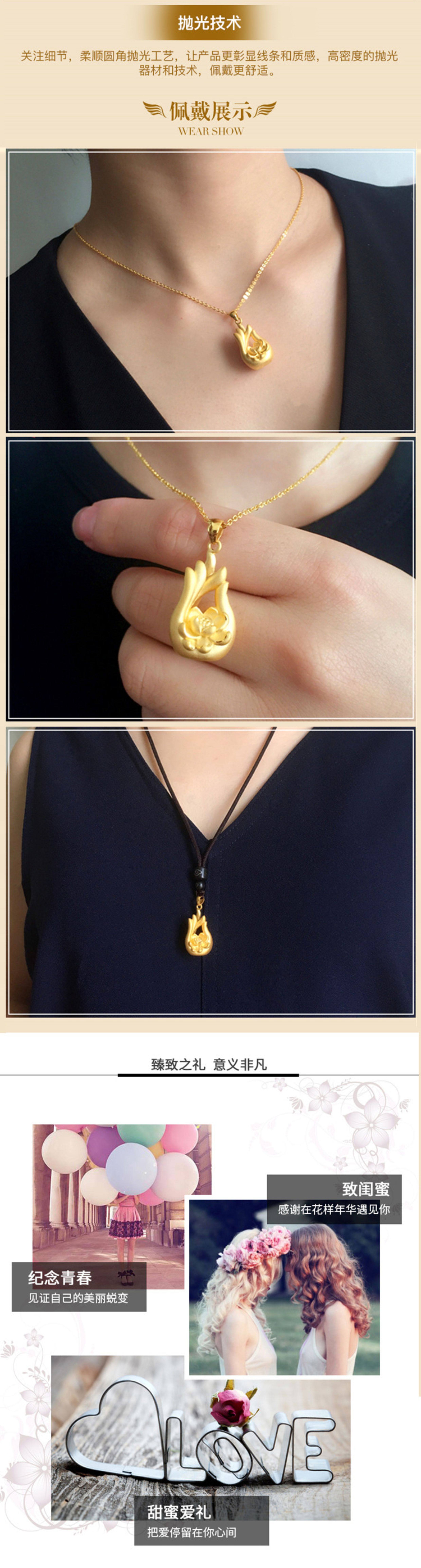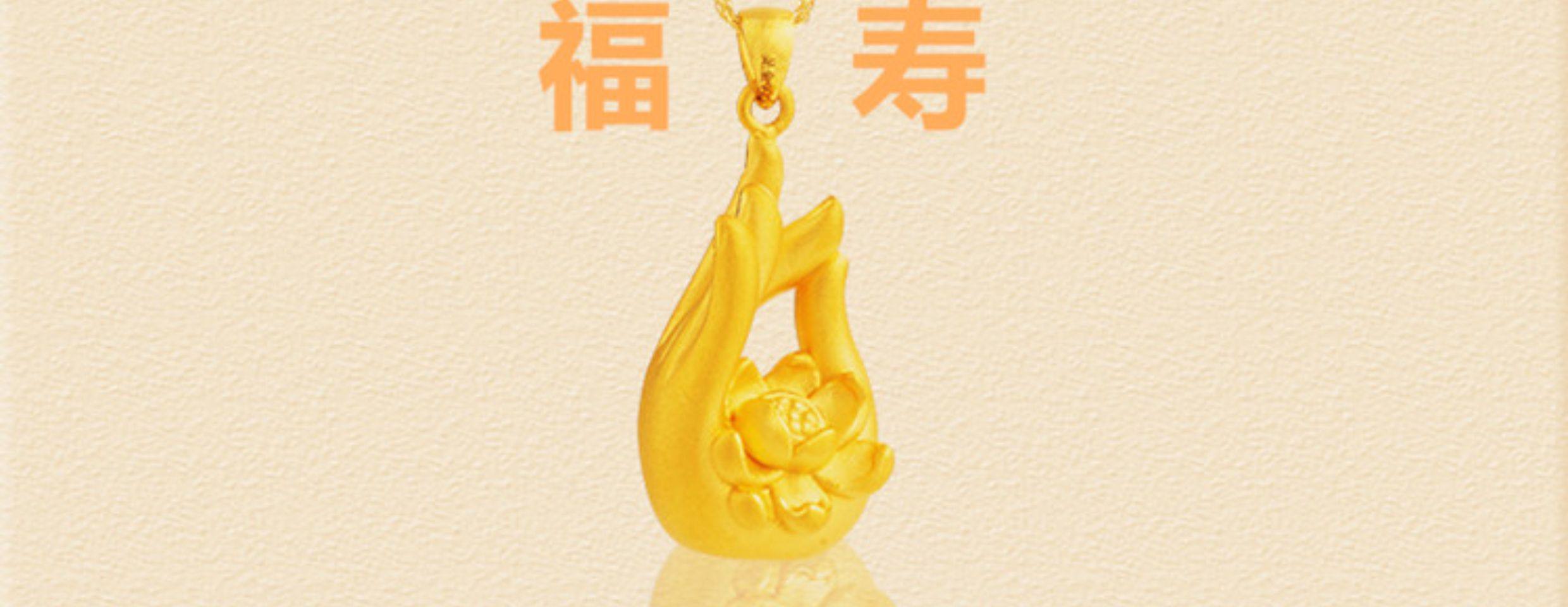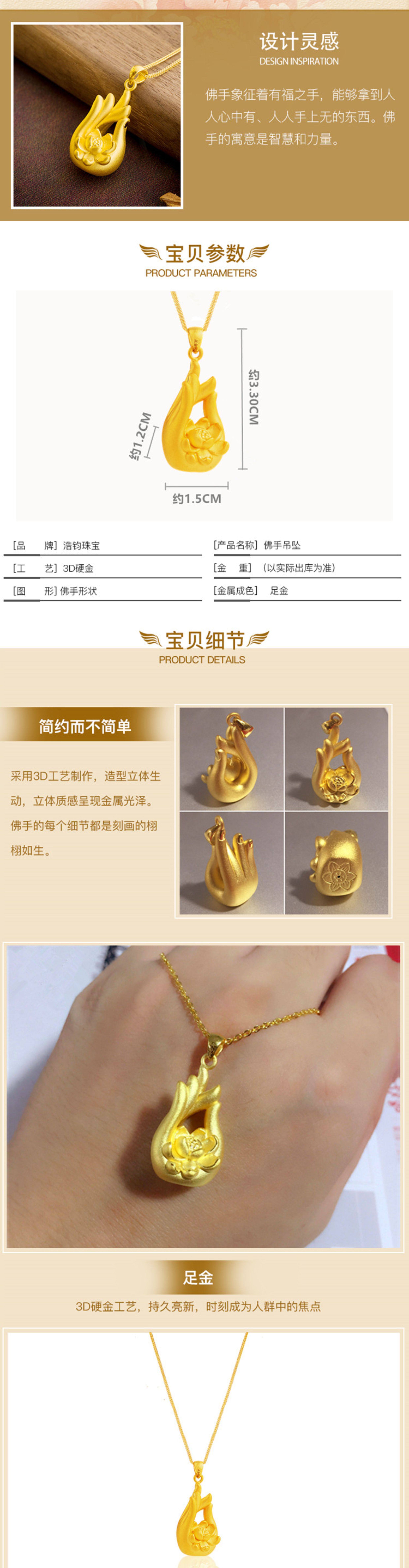 • 3D硬金吊坠999足金莲花佛手黄金转运女士挂坠 福寿吉祥送礼