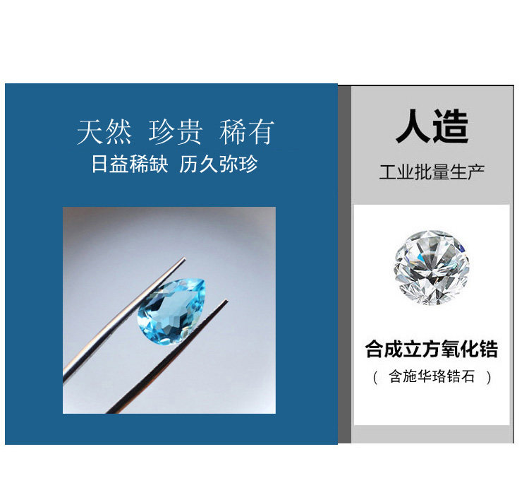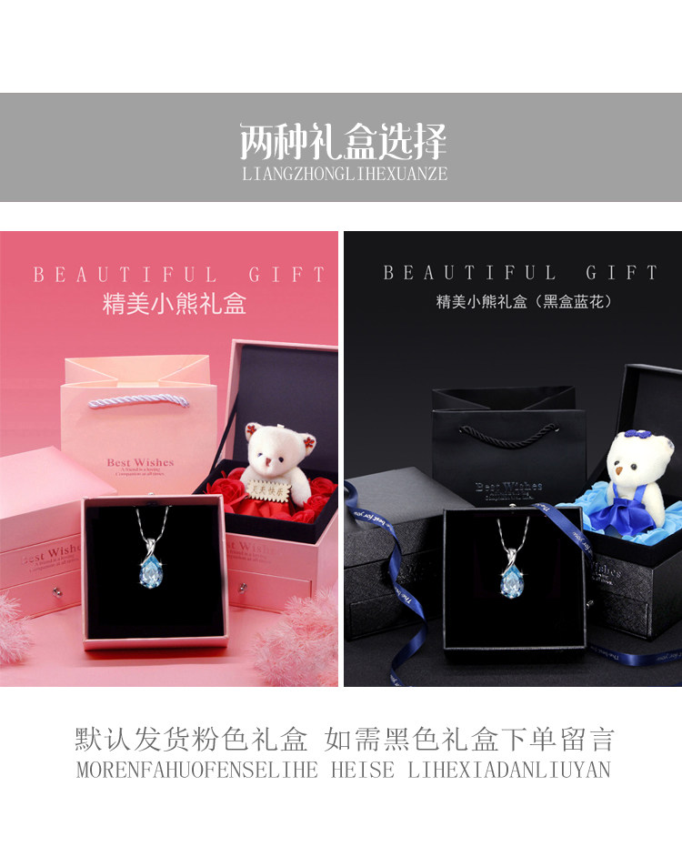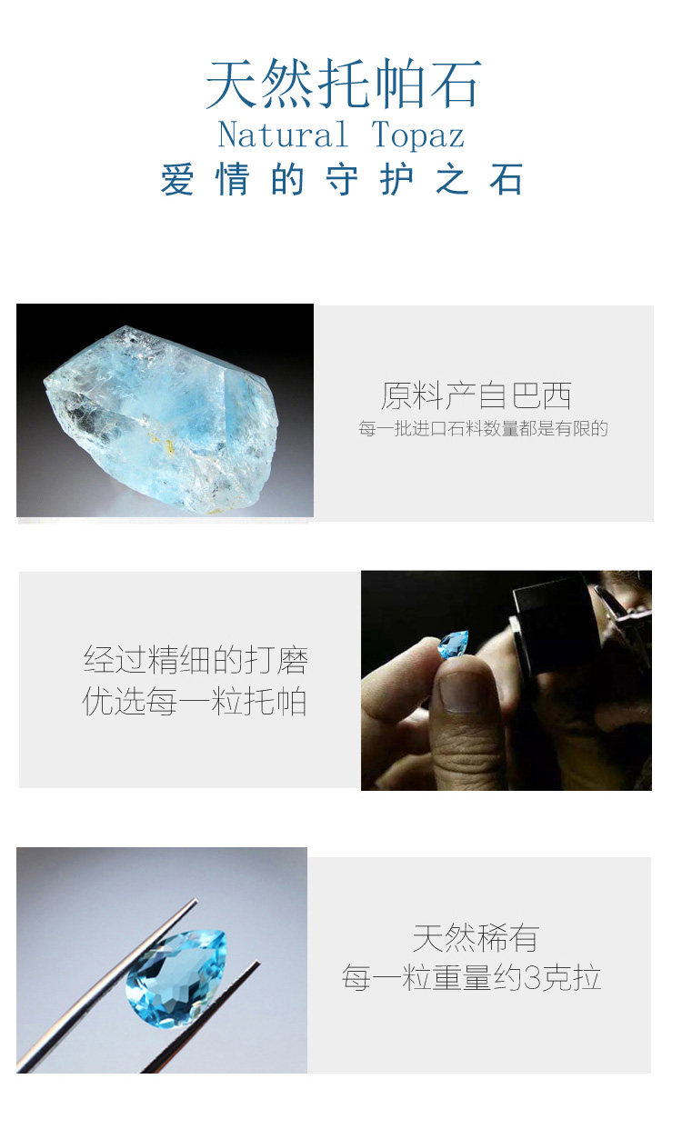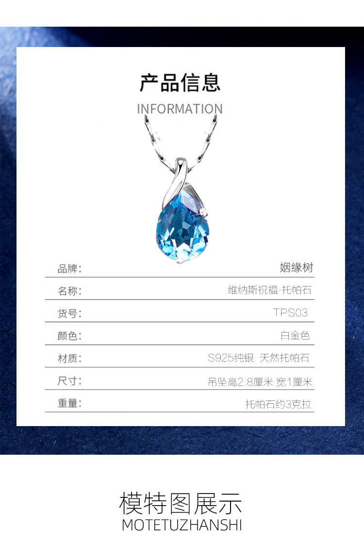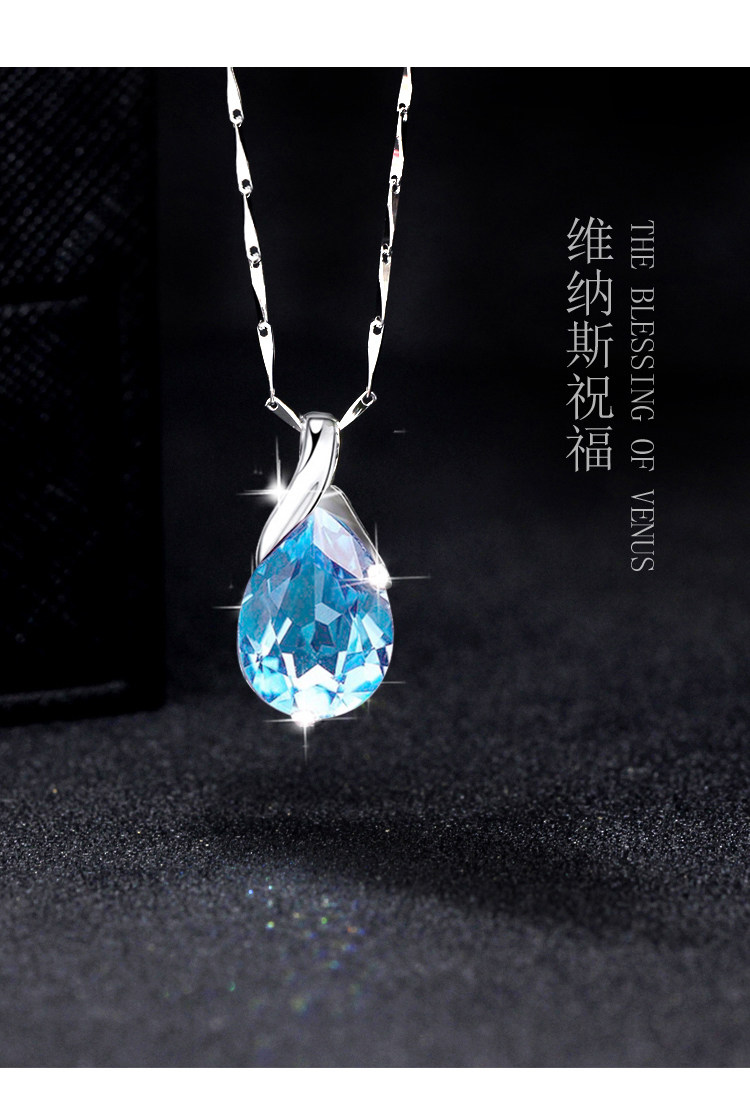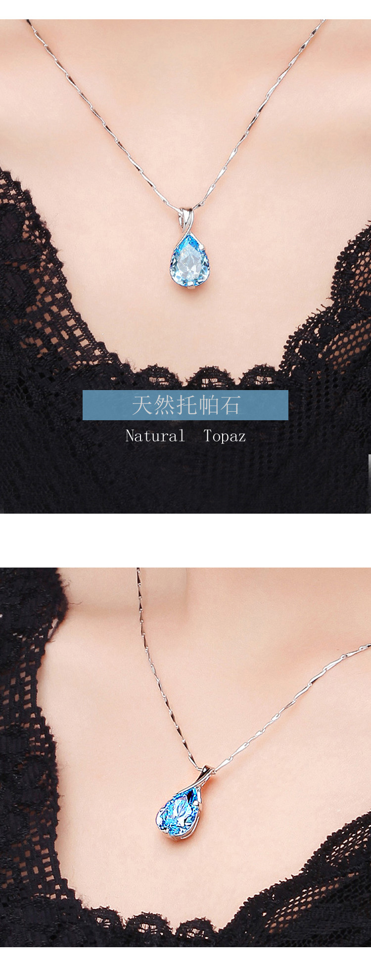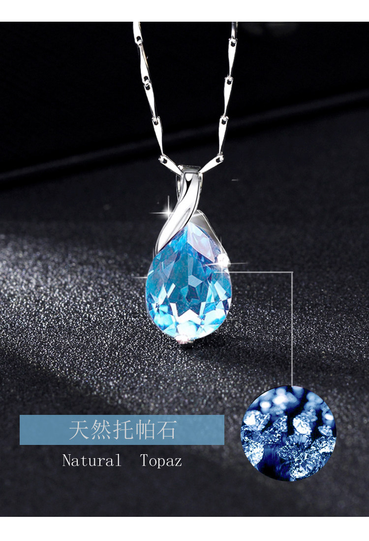 • 天然托帕石海蓝色水晶纯银项链女士宝石水滴轻奢小众吊坠生日礼物