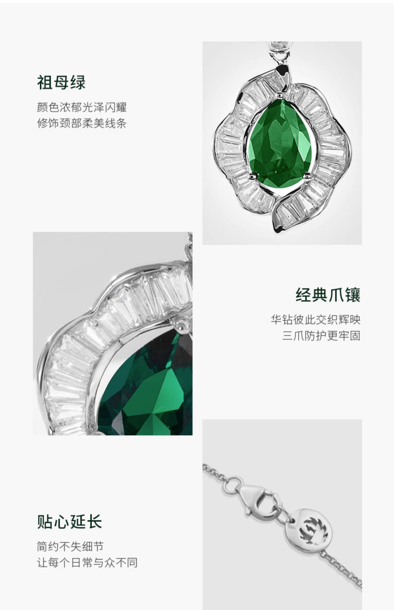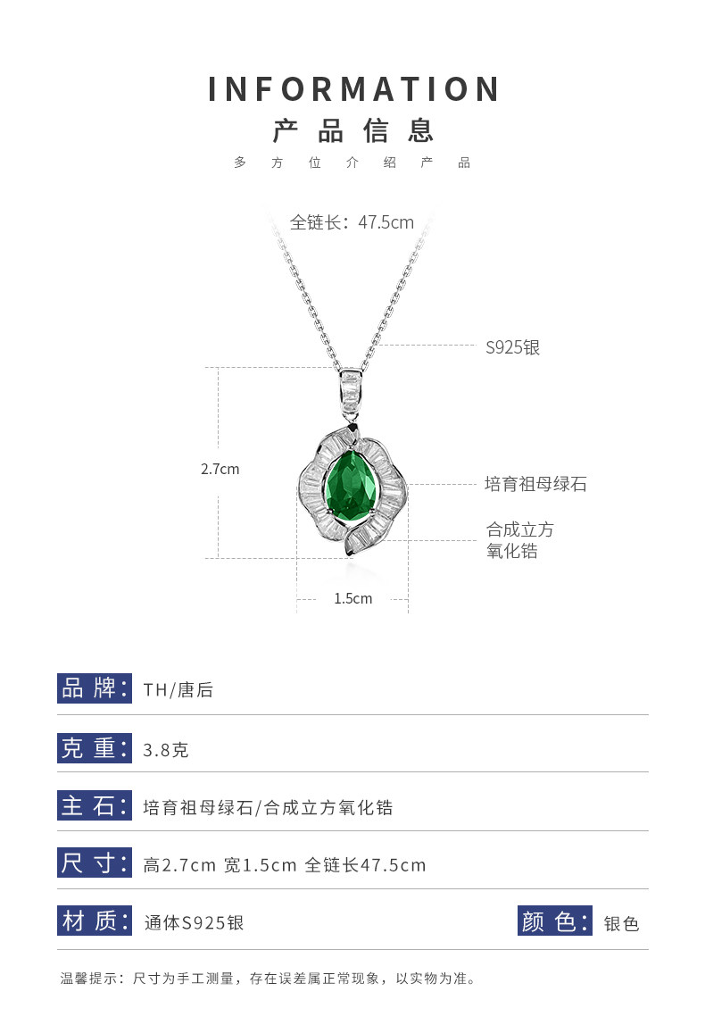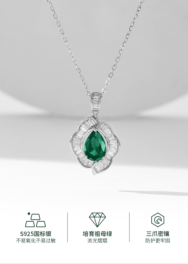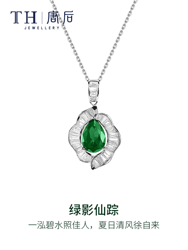 • 唐后【绿影仙踪】培育祖母绿宝石项链女轻奢高级感纯银吊坠送妈妈