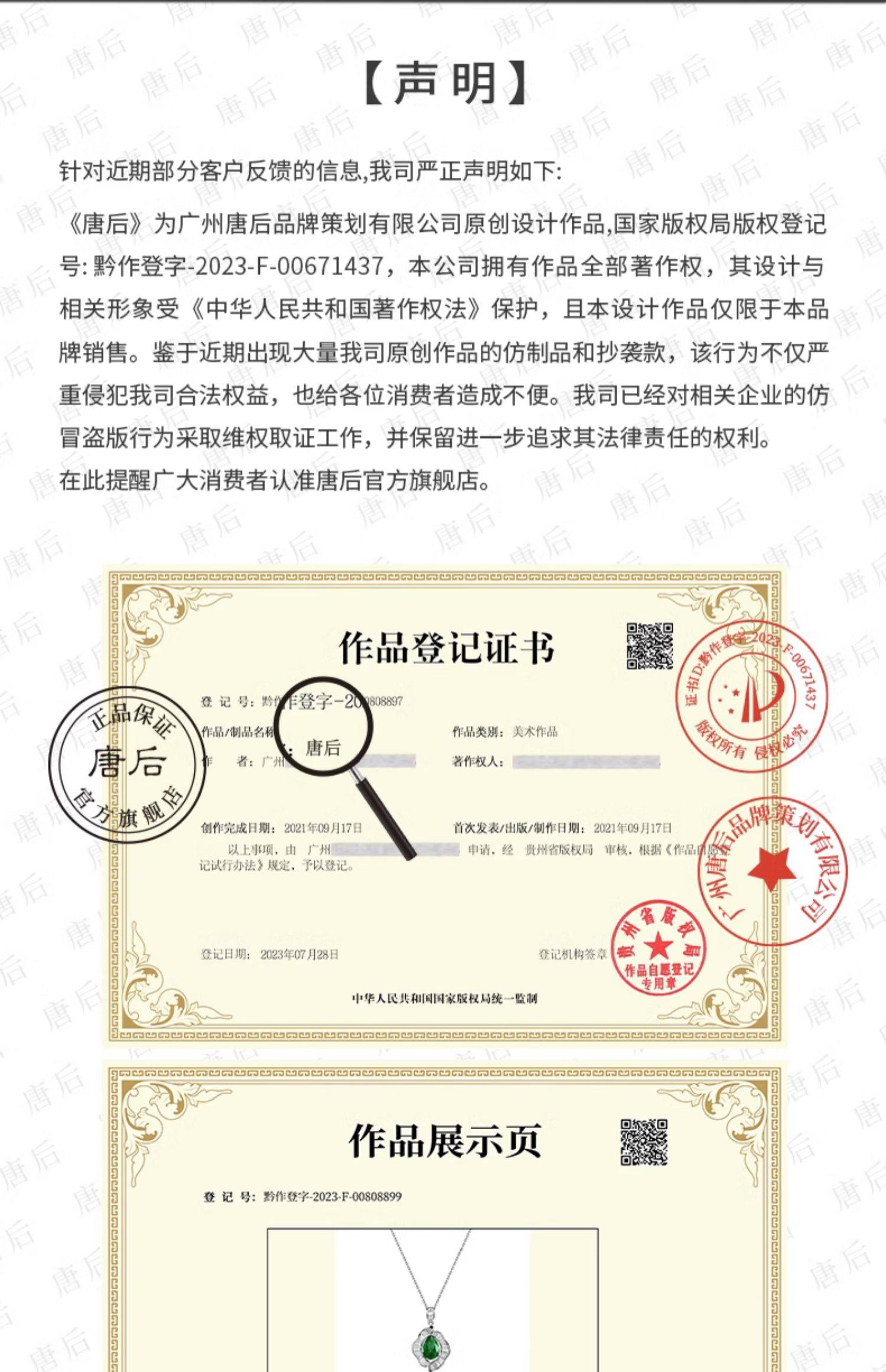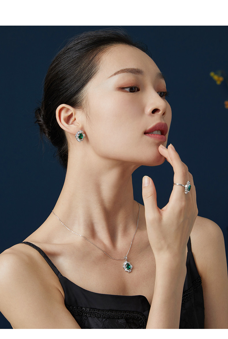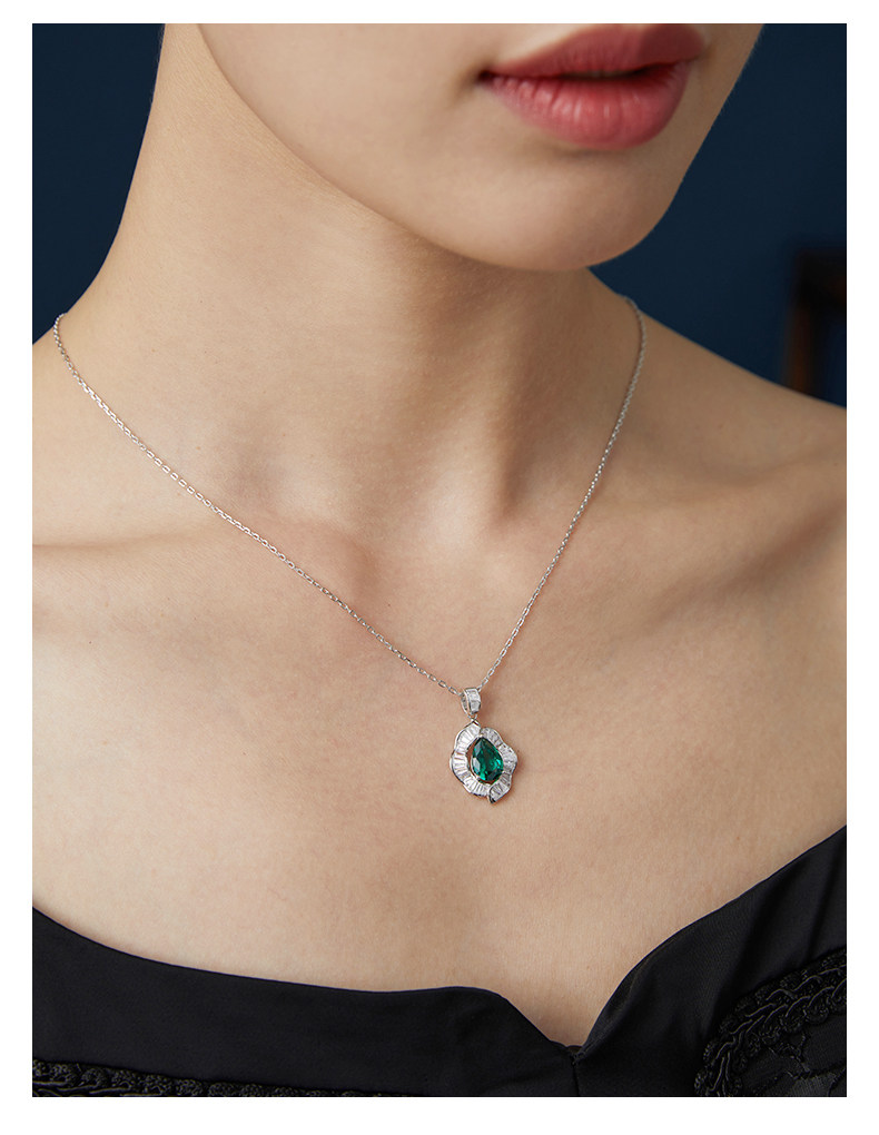 • 唐后【绿影仙踪】培育祖母绿宝石项链女轻奢高级感纯银吊坠送妈妈