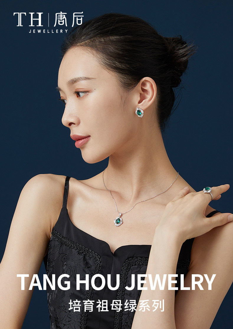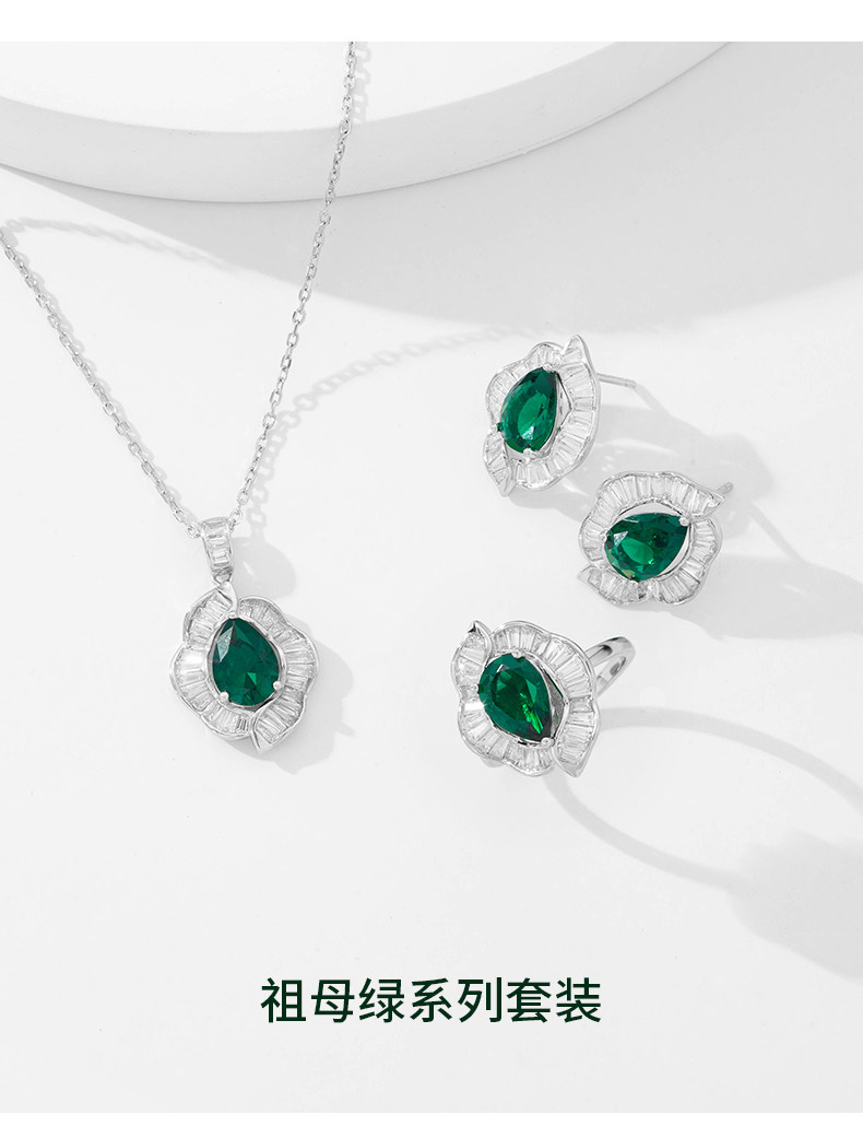 唐后【绿影仙踪】培育祖母绿宝石项链女轻奢高级感纯银吊坠送妈妈