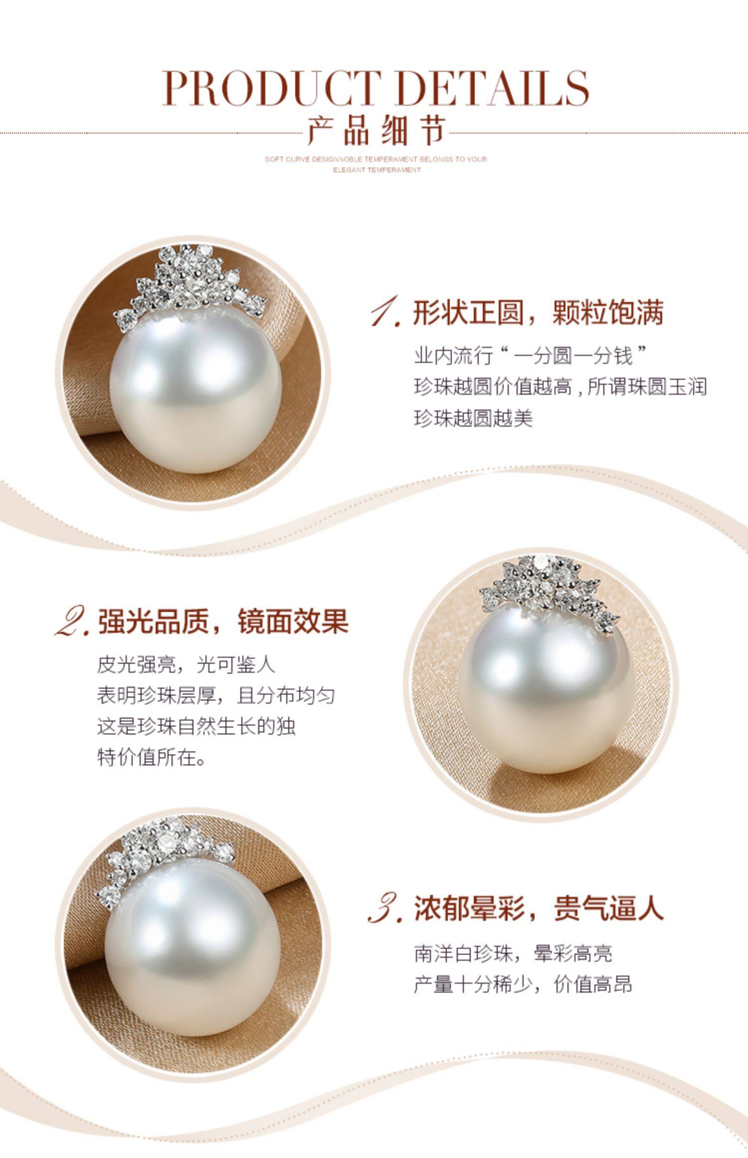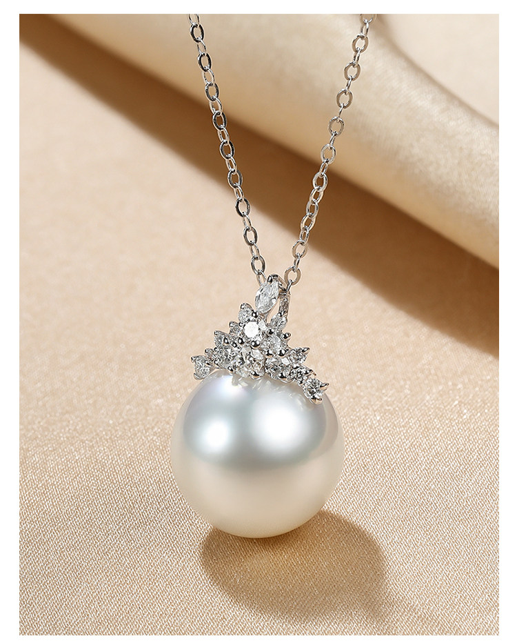 • 珍珠皇后 南洋澳白珍珠吊坠女18k金钻石高级奢品项链冰雪女王