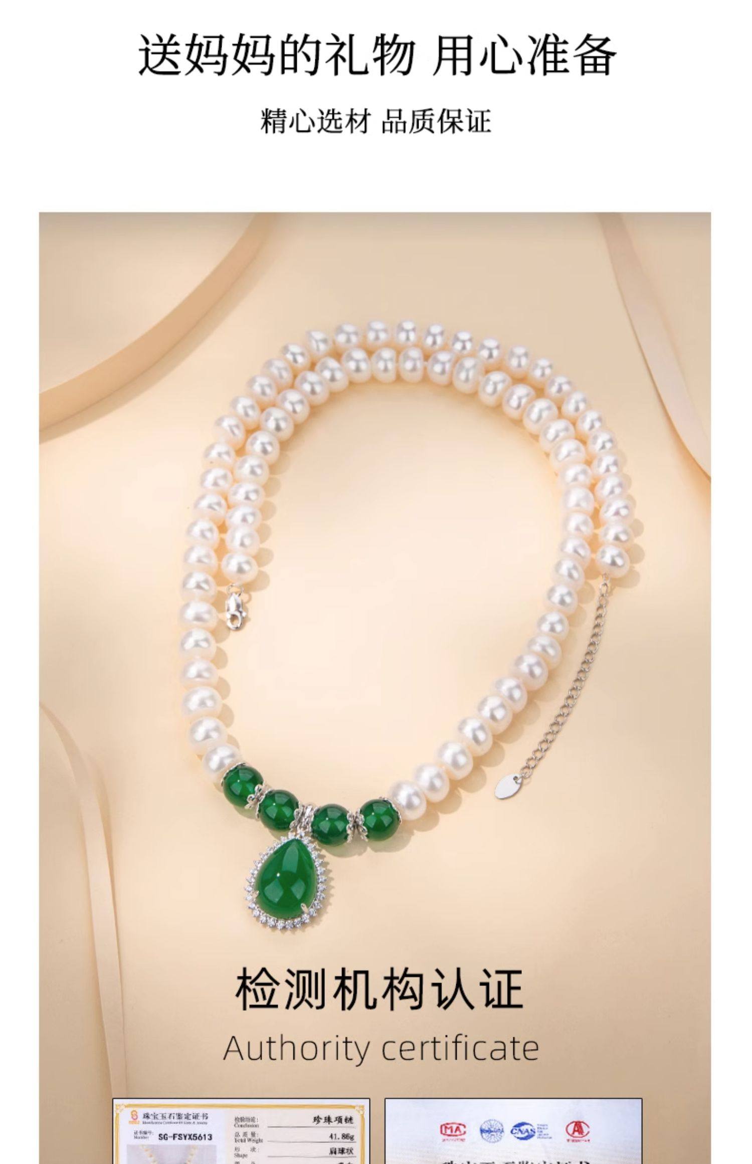• 母亲节天然珍珠项链妈妈款女正品颈链轻奢老人首饰送妈妈生日礼物