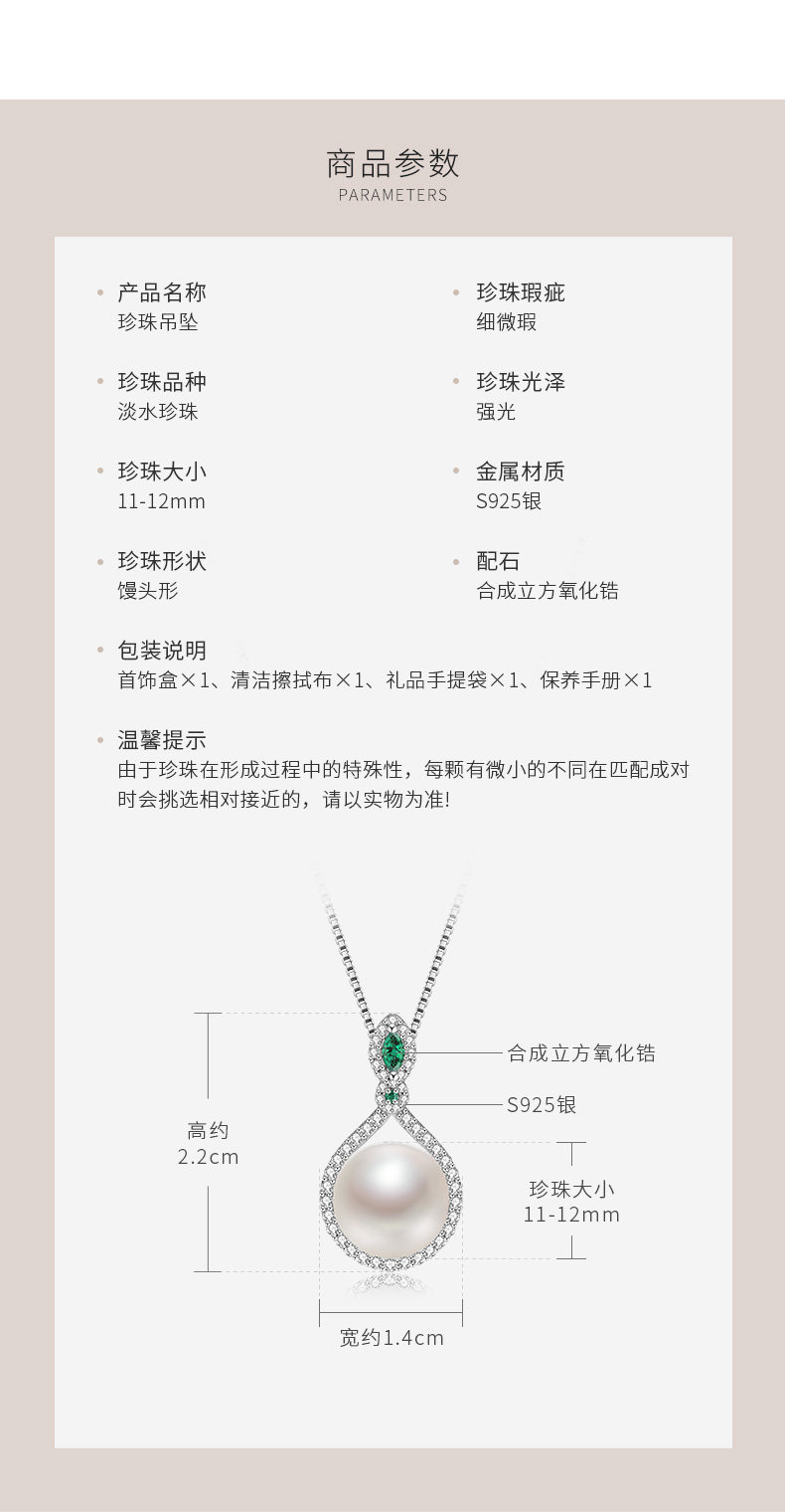 • 京润珍珠 碧梦S925银淡水珍珠吊坠送妈妈优雅时尚珠宝节日礼